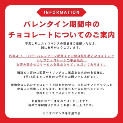 バレンタイン期間のチョコレート販売についてのお知らせ